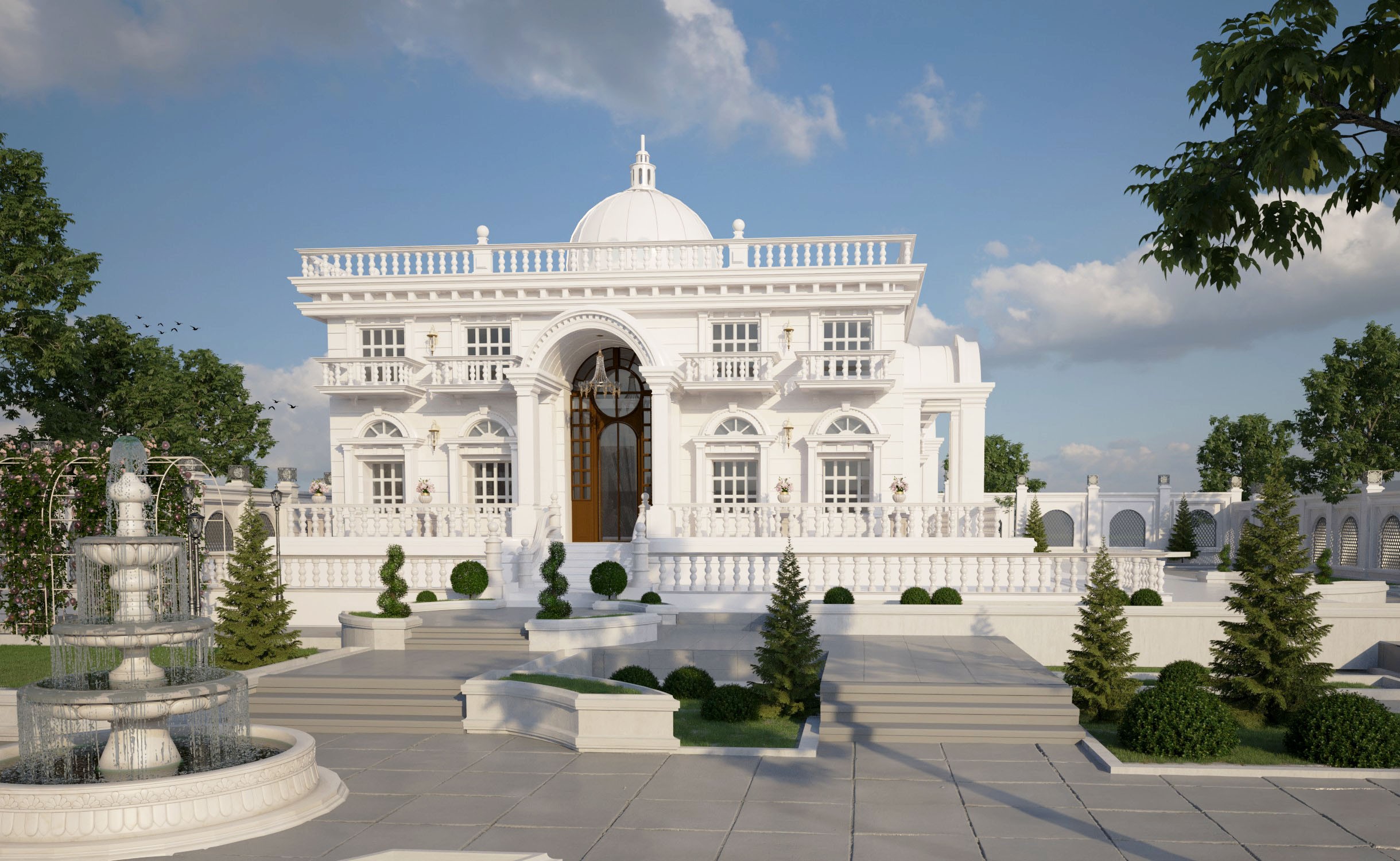 طراحی ویلا به سبک کلاسیک و طراحی لند اسکیپ