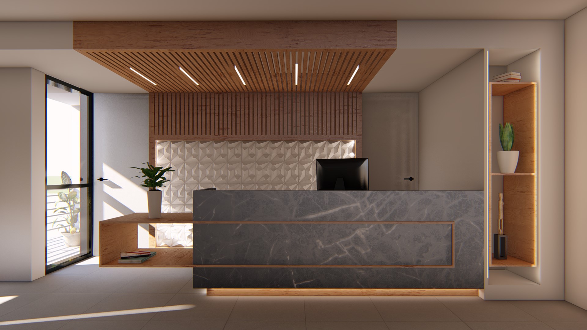 طراحی داخلی پذیرش مطب پوست و مو
