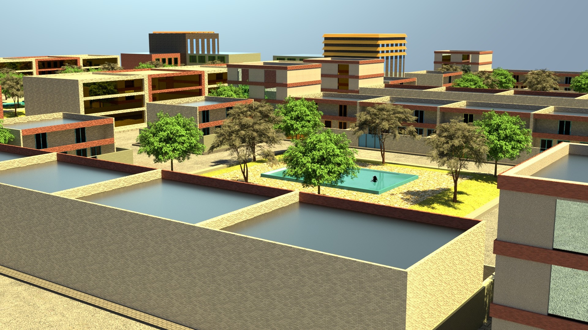 مدلسازی سه بعدی محله شهری شامل واحدهای مسکونی، تجاری و اداری